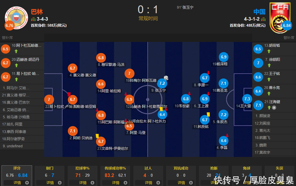 菠菜中心平台博彩彩金ip重复_不测,国足1-0巴林首发评分,张玉宁只排第2,7东谈主齐在7分以下!